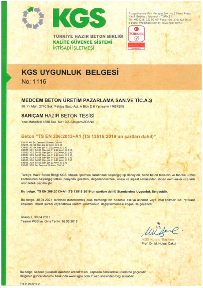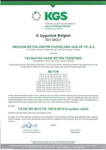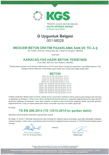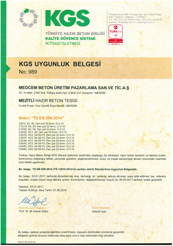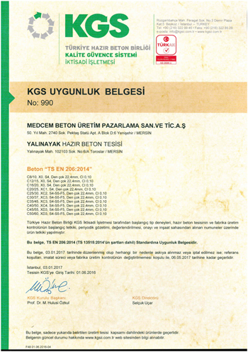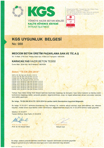 Mezitli Ready-Mixed Concrete Plant - KGS Certificate of Conformity