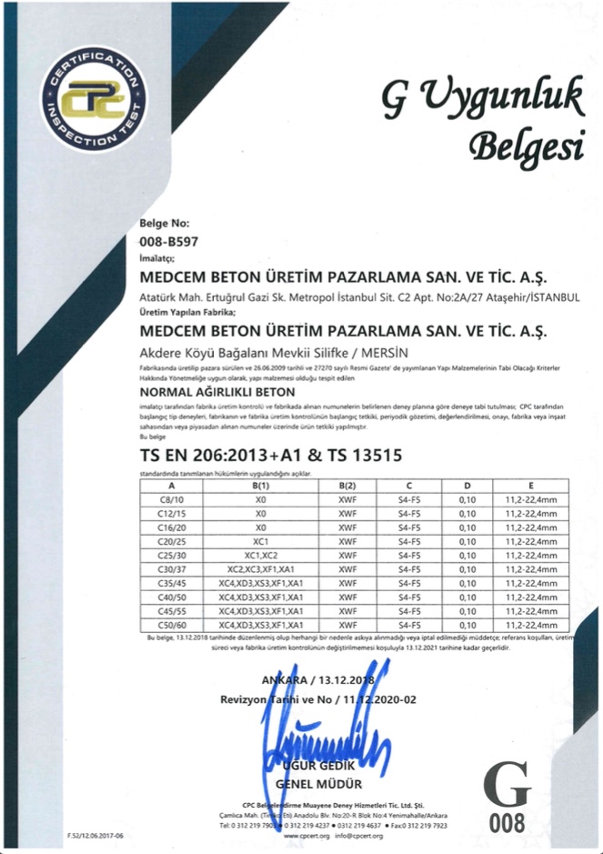 SİLİFKE READY-CONCRETE PLANT - G CERTIFICATE OF CONFORMITY