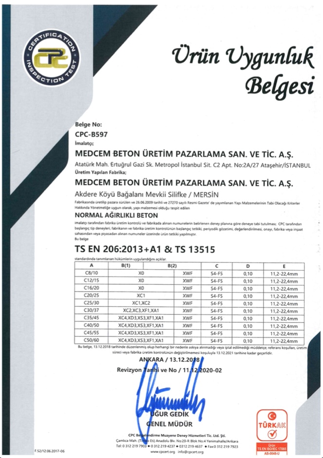 ANAMUR PREPARED CONCRETE PLANT - PRODUCT CONFORMITY CERTIFICATE